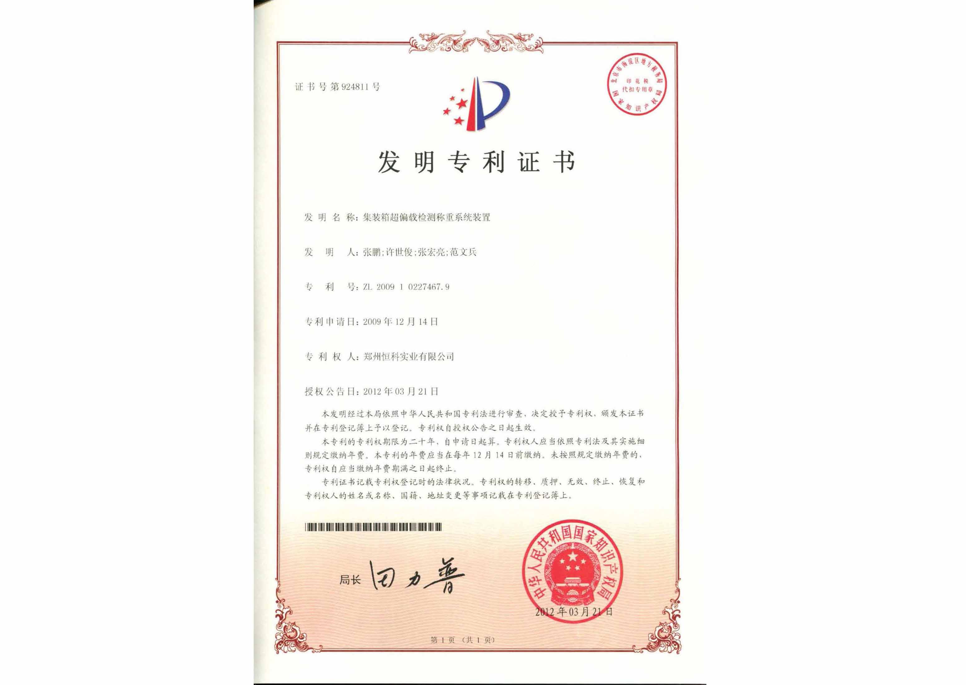 集裝箱超偏載檢測稱重系統(tǒng)裝置專利